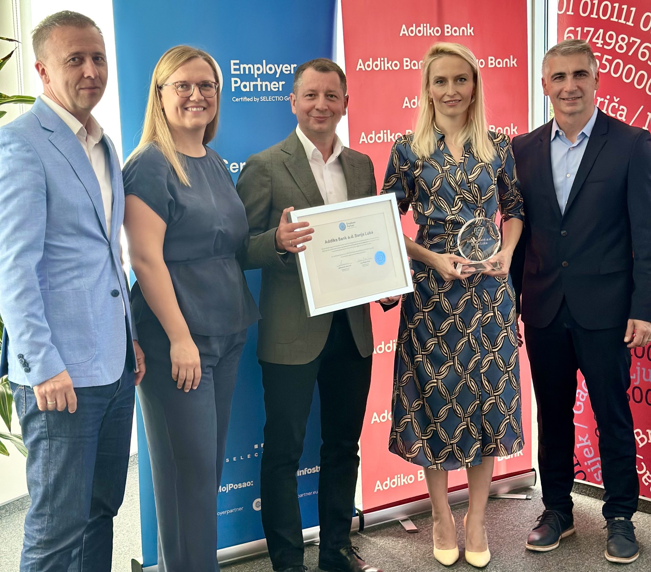 Ovo priznanje dodjeljuje SELECTIO Grupa na osnovu sveobuhvatne procjene organizacija koje svojim strateškim pristupom zaposlenima, razvoju ljudi i organizacijskoj kulturi postavljaju visoke standarde na savremenom tržištu rada. Addiko Bank Banja Luka je treću godinu zaredom potvrdila poziciju među najnaprednijim organizacijama koje ulažu u razvoj i kvalitet praksi u upravljanju ljudskim potencijalima i korporativnom kulturom, ali i po prvi put se našla iznad benchmarka Employer Partnera.
