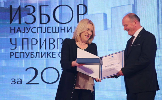 Preduzeća koja su imala značajnu investiciju i doprinijela zapošljavanju su “Dermal R” iz Kotor Varoša, “Kolektor CCL” iz Laktaša i “Boksit” iz Milića, a priznanja im je uručio ministar privrede i preduzetništva Republike Srpske Vjekoslav Petričević.