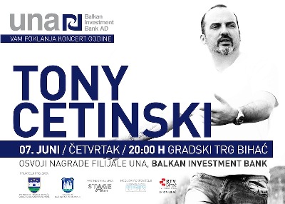 Koncertom Tonija Cetinskog Banka daje značajan doprinos akciji “Vratimo kulturu koncerata u grad Bihać”. Prijatelji koncerta su Vlada Unsko-sanskog kantona, premijer Hamdija Lipovača i Opšina Bihać, načelnik Albin Muslić.