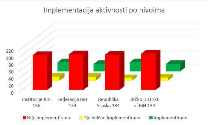 Prema podacima iz izvještaja, najviši procenat implementacije aktivnosti iz Akcionog plana bilježi Republika Srpska sa 19,40 odsto, dok je nivo institucija Bosne i Hercegovine na 17,21 odsto. Na začelju se nalazi Federacija BiH, koja je uspjela realizovati svega 15,67 odsto planiranih reformskih mjera.