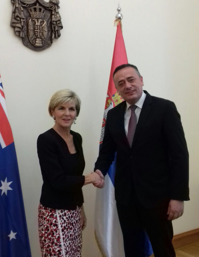 Na sastanku, koji je održan u okviru zvanične posjete ministarke Bišop Beogradu, konstatovano je da Srbija ima veliki interes za unapređenje političkih odnosa sa Australijom, kao i da će ova posjeta doprinjeti i boljim sveukupnim ekonomskim odnosima dviju zemalja.