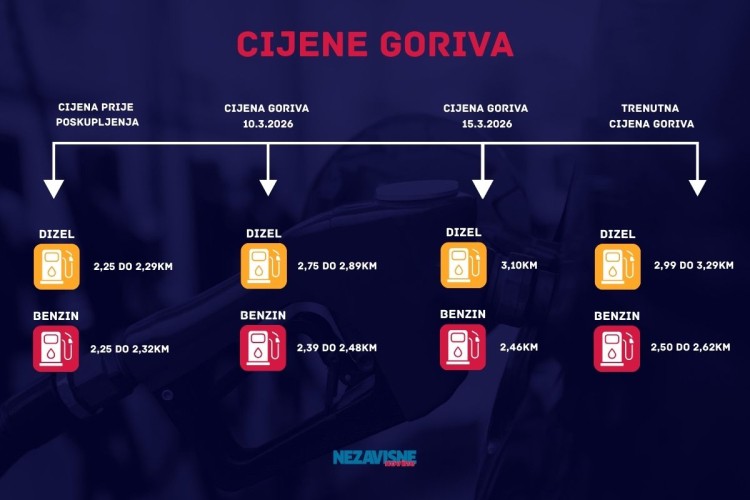 Naime, cijene dizela u Banjaluci kreću se od 2,99 do 3,29 maraka po litri, dok je cijena benzina od 2,50 do 2,62KM po litri. Nezavisne