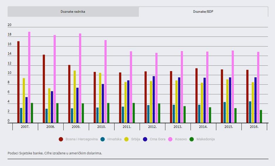 Doznake radnika u inostranstvu predstavljaju značajan dio u bruto domaćem proizvodu zemalja zapadnog Balkana.