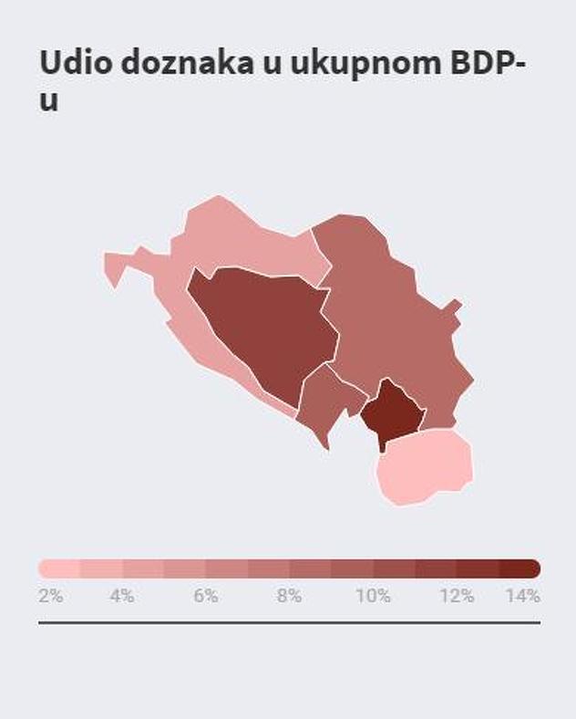 U Bosni i Hercegovini i na Kosovu iznos tih sredstava predstavlja 11, odnosno 14,8 odsto BDP-a.