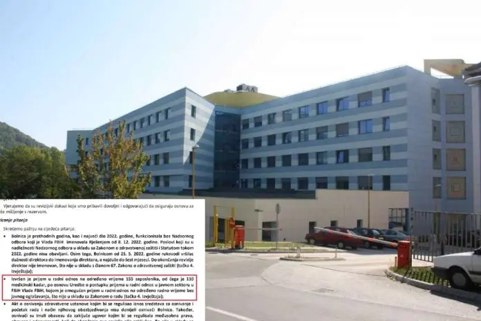 Na sumnjiva i nezakonita zapošljavanja upozorili su i federalni revizori. U revizorskom izvještaju navodi se da je “izvršen prijem u radni odnos na određeno vrijeme 155 zaposlenika, od čega je 110 medicinski kadar, po osnovu Uredbe o postupku prijema u radni odnos na određeno radno vrijeme bez javnog oglašavanja, što nije u skladu sa Zakonom o radu.