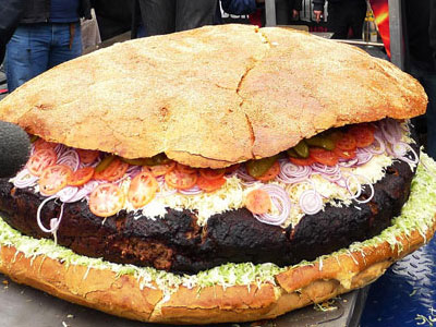 U džinovsku zemičku stavljeno je između ostalog više od 20 kilograma salate, 20 kilograma crnog luka i pet kilograma kiselih krastavaca. Za pečenje pljeskavice napravljen je specijalan roštilj.