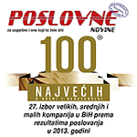 SARAJEVO, Ceremonija dodjele priznanja kompanijama koje su u prošloj godini ostvarile najbolje poslovne rezultate, u okviru projekta “100 najvećih kompanija u BiH”, biće održana u četvrtak, 26. juna u Sarajevu, najavljeno je iz Poslovnih novina.