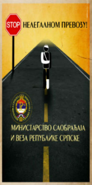 BANJALUKA, Ministarstvo saobraćaja i veza Republike Srpske počelo je kampanju protiv nelegalnog prevoza kao ”ozbiljnog problema koji narušava javni prevoz i bezbjednost saobraćaja u Srpskoj”, za koji su predviđene kazne od 1.000 do 5.000 KM, kao i isključenja i oduzimanja vozila.