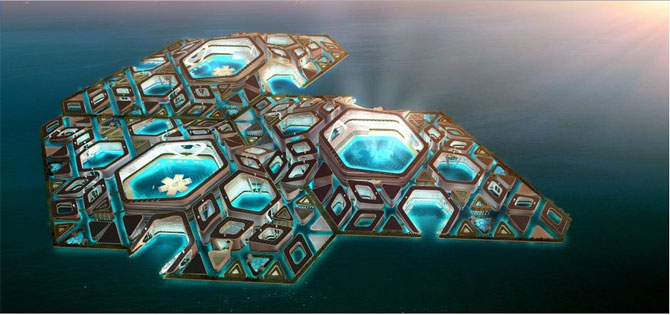 Ovaj grad je zamišljen tako da se samoodržava, sa proizvodnjom hrane i solarne energije na površini, kao i vlastitom lukom.