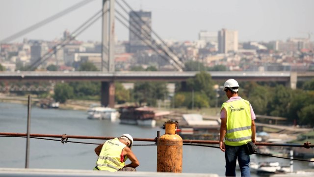 Jedan od radnika na tom mostu Jovo Ivanović, koji se 45 godina bavi građevinom, rekao je da se sa poslom kreće rano ujutru, da se prave duže pauze po najvećem suncu i da može da se izdrži.