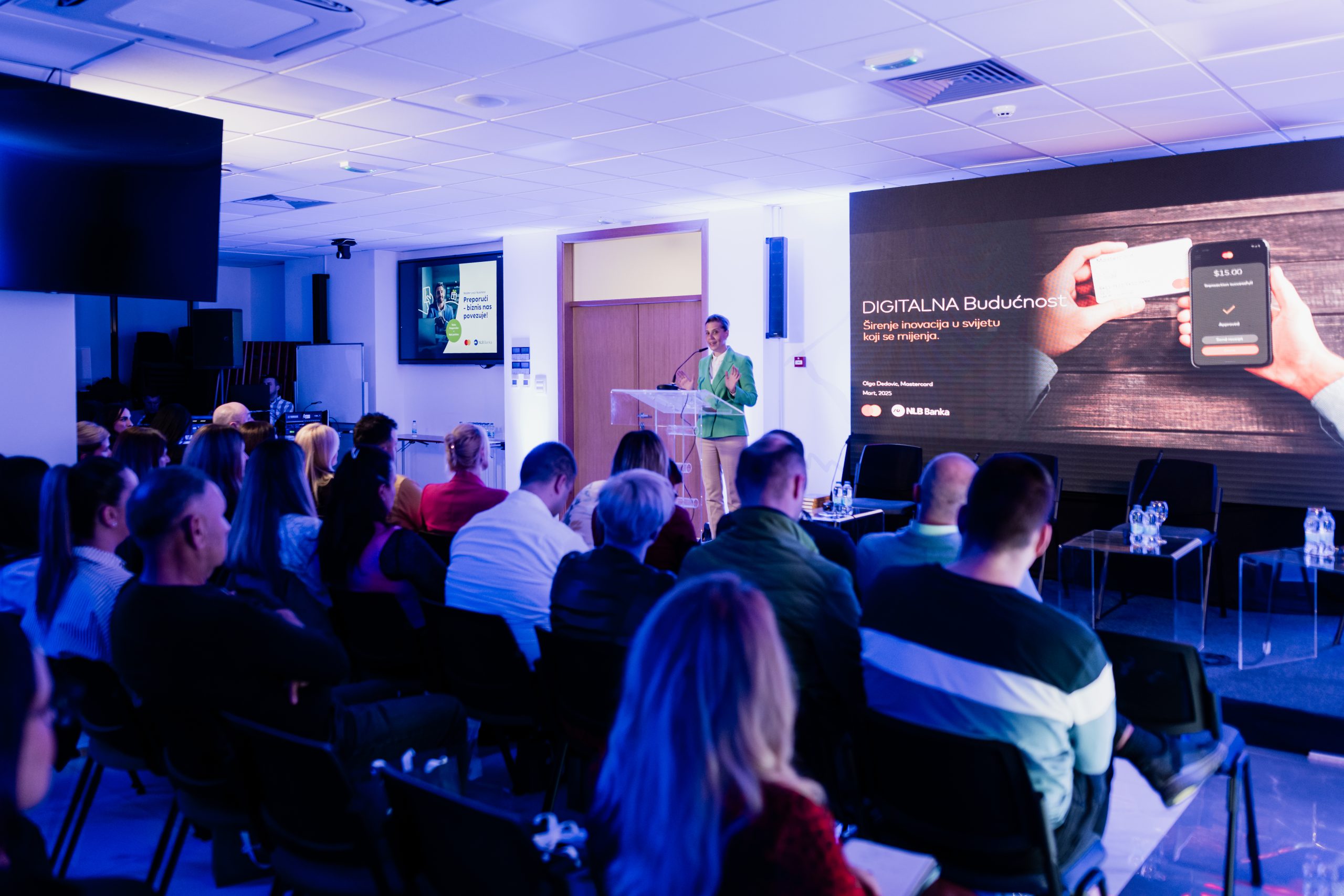 Preduzetnicima su predstavljeni benefiti ekološke NLB Mastercard Business Debit kartice, kao i budući trendovi u svijetu digitalnih plaćanja, sa naglaskom na sigurnost, pristupačnost i prilagodljivost novim potrebama tržišta. Olga Dedović (Director Account Management) iz kompanije Mastercard prezentovala je brojne inovacije i trendove poslovanja na globalnom nivou.