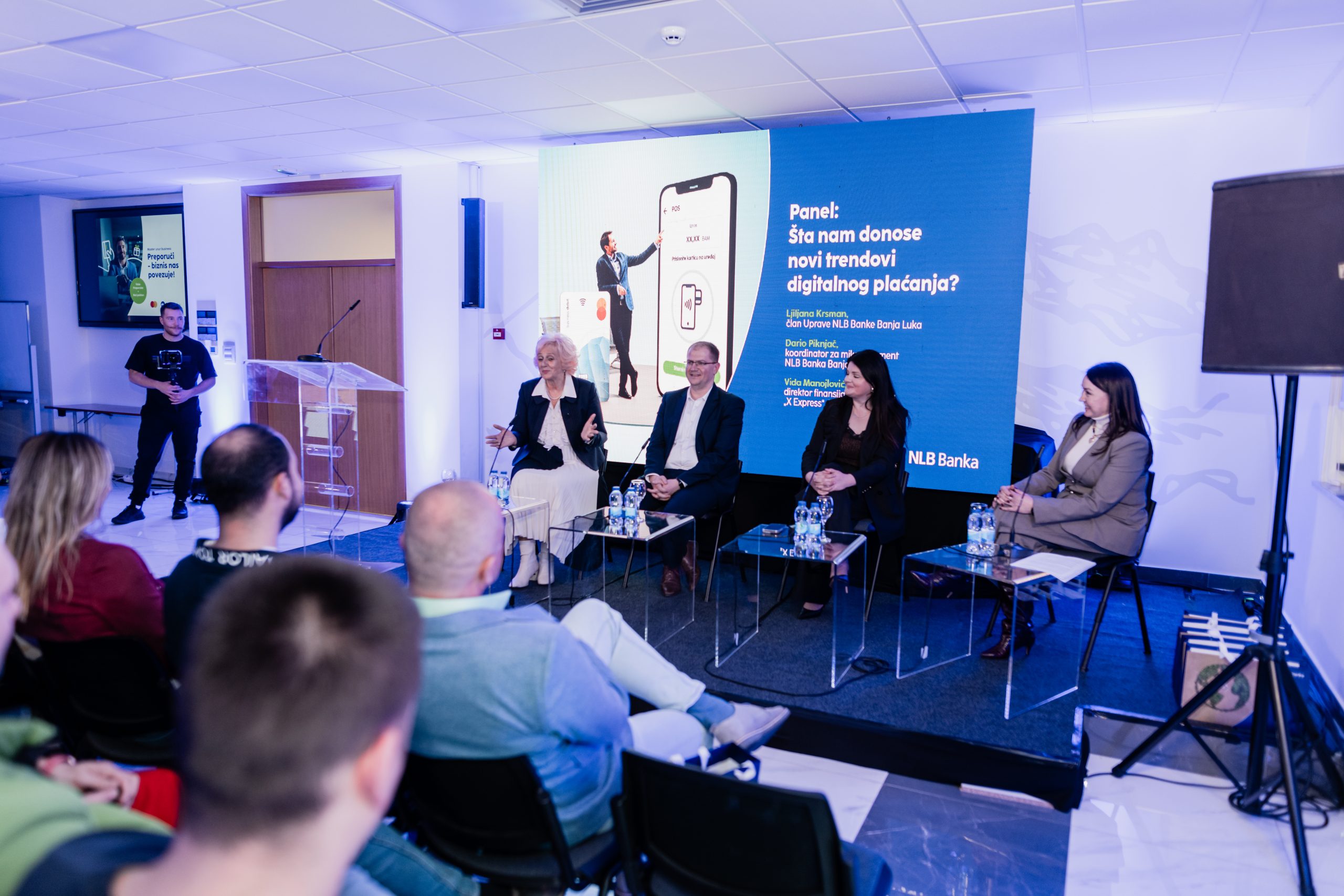 Konferencija je, osim prezentovanja inovacija bila i prilika za razmjenu informacija sa klijentima kroz panel diskusiju: „Šta nam donose novi trendovi digitalnog plaćanja?“, na kojem su učestvovali: Vida Manojlović, finansijski direktor kompanije „X-express“, koja je podijelila iskustvo implementacije NLB Smart POS usluge u poštansku djelatnost, Ljiljana Krsman, član Uprave NLB Banke Banja Luka i Dario Piknjač, koordinator za mikro segment u NLB Banci Banja Luka. Tokom panela, učenici su zajedno sa preduzetnicima razgovarali o izazovima i prednostima digitalnog plaćanja, kao i o tome kako nove tehnologije mogu olakšati svakodnevno poslovanje.