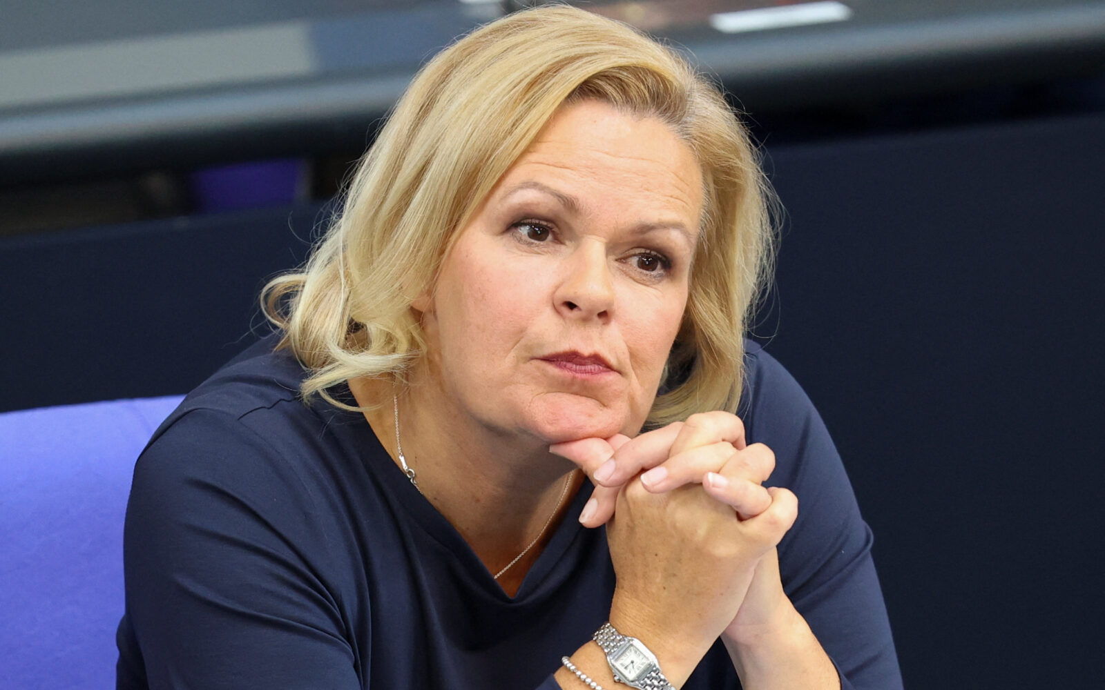 German Interior Minister Nancy Faeser attends a session of the lower house of parliament, Bundestag, at the Reichstag building, in Berlin, Germany September 20, 2023. REUTERS/Liesa Johannssen