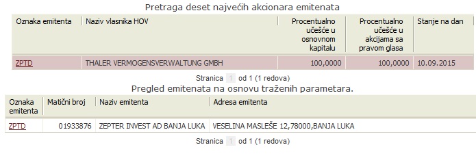 Thaler, odnosno njegova firma „Thaler Vermogensverwaltung“ GMBH, je i zvanično upisana u Centralnom registru hartija od vrijednosti Banjaluka kao vlasnik 100 odsto akcija DUIF „Zepter invest“ koje je bilo vlasništvo poznatog biznismena srpskog porijekla Philipa Zeptera, odnosno njegove firme “Zepter International” Kozarska Dubica.