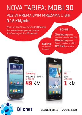 BANJALUKA, Razgovarajte sa svim mrežama u BiH sa Mobi 30, novom tarifom Blicnet mobilne telefonije, za 0,16 KM po minuti.