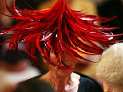 LONDON, Gomila crvenog perja koju je dizajnerka Ketrin Hemnet nosila prilikom primanja ordena, zbacila je sa trona do danas najružniji šešir princeze Beatrise.