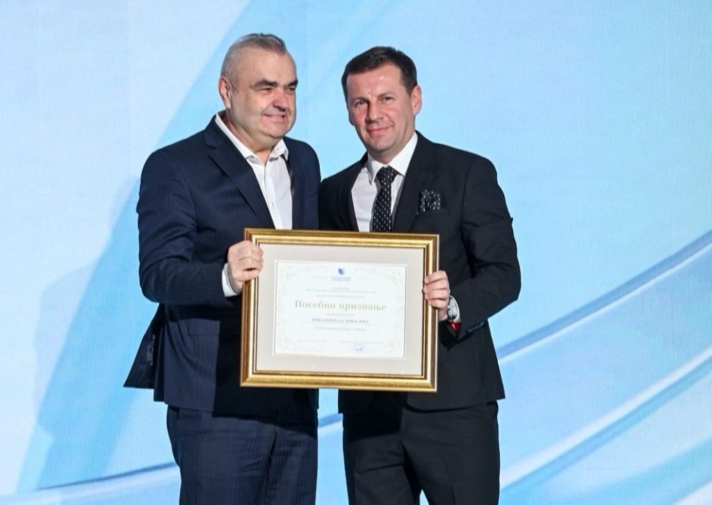 Priznanje za najveći plasman kredita u privredu Republike Srpske potvrđuje ulogu Nove banke kao jedne od ključnih finansijskih institucija u podršci razvojnim i investicionim projektima, a u ime Banke preuzeo ga je predsjednik Uprave Siniša Adžić.