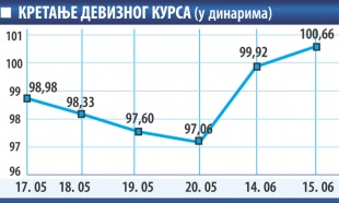 – Kao što je prodaja zapisa indeksiranih u evrima krajem decembra prošle godine dovela do jačanja domaće valute, jer su se banke i investitori odlučili da prodaju devize da bi obezbijedili dinare za kupovinu tih hartija od vrijednosti, očekuje se da će domaća valuta i ovog puta ojačati – kaže Goran Nikolić, ekonomista. – Po svemu sudeći, i Vlada i NBS su se odlučili za politiku stabilnog dinara, ali to ne znači da bi domaća valuta trebalo naglo i mnogo da ojača u odnosu na evro, jer to nije dobro za privredu, prije svega za izvoz.