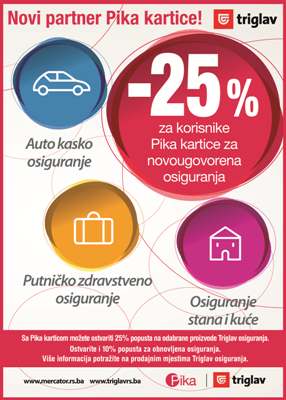 Partnerskom saradnjom Mercatora BL i Triglav osiguranja 25% popusta za korisnike Pika kartice