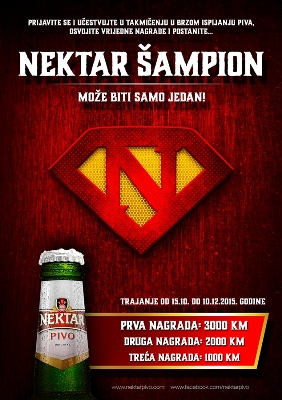 Ovogodišnje takmičenje „Nektar šampion“ je podjeljeno u 4 regije u više od 30 gradova širom BiH. U brzom ispijanju piva iz boca od 0,33l oprobaće se preko 3000 učesnika u više od 100 lokala. Takmičenje će se odvijati u dva nivoa. Prvi nivo su kvalifikacije u kojima će se takmičari iz lokala takmičiti za najbržeg “Nektar šampiona” u regiji. Iz svake regije 7 takmičara sa najboljim vremenom kvalifikuje se za posljednji nivo takmičenja. Pored ovih 28 takmičara, u posljednji nivo takmičenja kvalifikuju se još 4 takmičara sa najboljim ostvarenim vremenom, među svim ostalim takmičarima Nektar šampionata. Drugi nivo takmičenja je veliko finale koje će biti održano sredinom decembra i na kojem će se izabrati “Nektar šampion”.