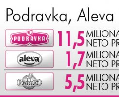 „Aleva“ zapošljava oko 300 radnika, a „Podravka“ 6.570. Ova hrvatska kompanija u Srbiji prodaje 14 proizvoda.
