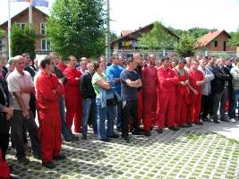 SREBRENICA, Na sindikalnom skupu zaposlenih u pogonu slovenačke firme “Cimos” u Potočarima radnici, opštinsko rukovodstvo, Sindikat Republike Srpske i veliki broj građana dali su podršku direktoru pogona Azemu Huremoviću da ne dozvoli njegovo najavljeno zatvaranje.
