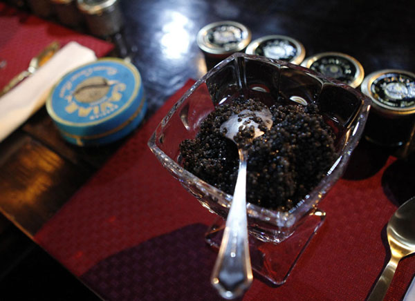 Naoružani velikom kašikom, 12 učesnika, izabranih žrebom, jelo je, što je brže moglo, iz činija sa ikrom jesetre.