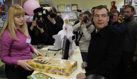 Kompanija Alajans Telekom iz istočne Rusije trenutno reklamira novu promociju pod nazivom “Moskva”, a u okviru koje lik predsjednika Rusije iskače iza crvenih zidova Kremljina, gdje ga posjetioci sajta mogu samo jednim klikom miša upucati i potom staviti zlatni oreol oko glave.