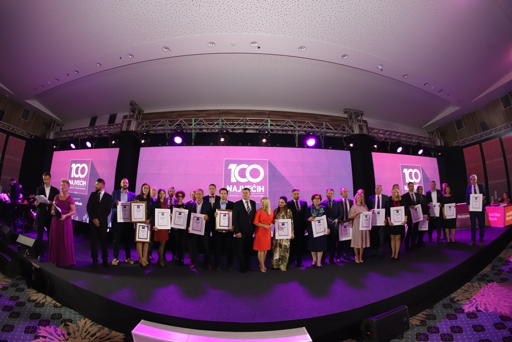 Najuspješnijim bh. kompanijama po ukupnom prihodu, dobiti, izvozu i investicijama uručena su priznanja, a kompletni rezultati istraživanja dostupni su u tradicionalnom specijalnom izdanju publikacije Poslovnih novina – «100 najvećih u BiH», koja predstavlja godišnji pregled uspješnog poslovanja domaće privrede.