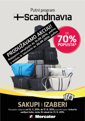 BANJALUKA, Zbog velikog interesovanja kupaca, Mercator BL produžio je rok za sakupljanje naljepnica kojima se ostvaruje popust do 70 odsto na odabrane proizvode putnog programa Scandinavia. Naljepnice kojima se nagrađuje svaka kupovina preko 10 KM mogu se sakupljati do 14. septembra i iskoristiti do 30. septembra 2014. godine.