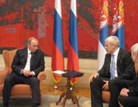 BEOGRAD, Ruski premijer Vladimir Putin počeo je posjetu Beogradu sastankom u četiri oka sa predsjednikom Srbije Borisom Tadićem, a, kako je najavljeno, Putin će sa srpskim zvaničnicima razgovarati o nizu pitanja, u prvom redu o ekonomskim i energetici.