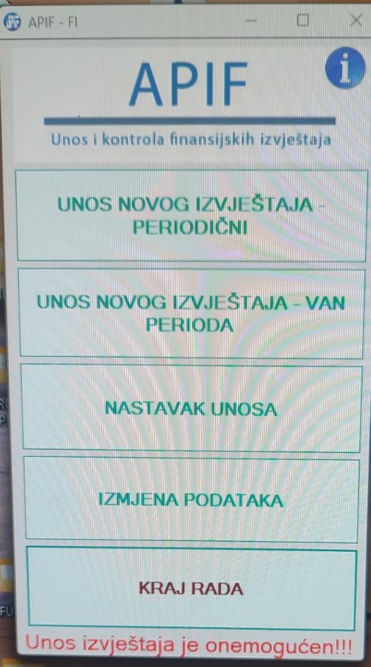 Kaže da su dobili obavještenje da je aplikacija preopterećena zbog velikog unosa podataka u vrijeme predaje završnih računa.