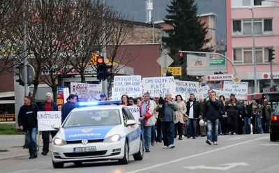 Radnici “Kosmosa” protestnu šetnju započeli su ispred preduzeća, zadržali se oko pola sata na Trgu Krajine, a odatle se uputili prema parku “Mladen Stojanović”.