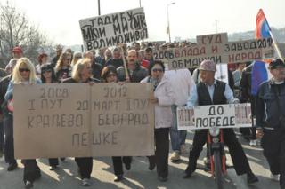 Kolona radnika kreće se Ibarskom magistralom u obje trake pravcem Kraljevo-Raška tako da se saobraćaj u mjestima i dijelovima puta kojima prolaze obustavlja. Policija preusmjerava saobraćaj po potrebi, tako da nema većih kolona i zastoja.