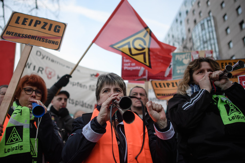 BERLIN, Njemački radnici izašli su na ulice juče u sklopu masovnih protesta protiv velikih rezova u ključnom industrijskom sektoru.