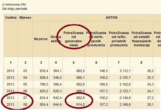 Potraživanja komercijalnih banka od opština i Vlade u RS samo za mjesec dana porasli su za 31,5 miliona, odnosno sa 882,6 miliona KM koliko su iznosila u junu ove godine, na 914 miliona KM koliko su iznosila na kraju avgusta ove godine.