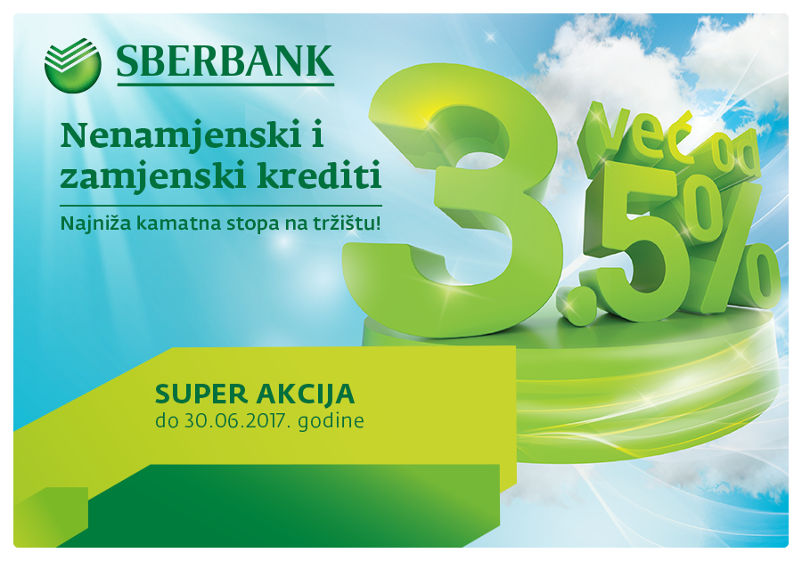 BANJA LUKA – Sberbank a.d Banja Luka je pokrenula SUPER AKCIJU nenamjenskih zamjenskih kredita sa kamatnom stopom već od 3.5%.