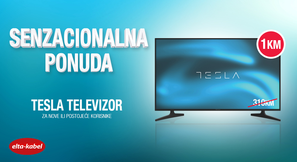BANJA LUKA, Odaberite novi DUO ili TRIO paket iz naše ponude i uzmite Tesla televizor za 1KM. Novi paketi obuhvataju kablovsku televiziju sa više od 130 digitalnih kanala, među kojima i 21 kanal u HD kvalitetu; internet brzina koja ide i do 60 Mbps, kao i besplatne razgovore unutar Elta-Kabel fiksne telefonije. Takođe, paketi nude i besplatne razgovore prema Elta-Kabel mobilnoj telefoniji.