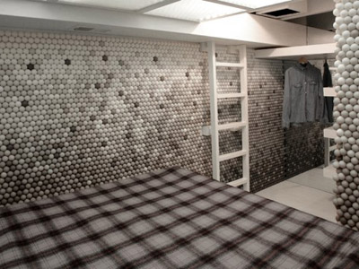 Prvi put kada prođete kroz vrata ovog stana učini vam se da su zidovi veliki sivi pikselasti ekrani koji nestaju u odnosu na tavanicu, ali kada se približite shvatite da je to gomila ping pong loptica.