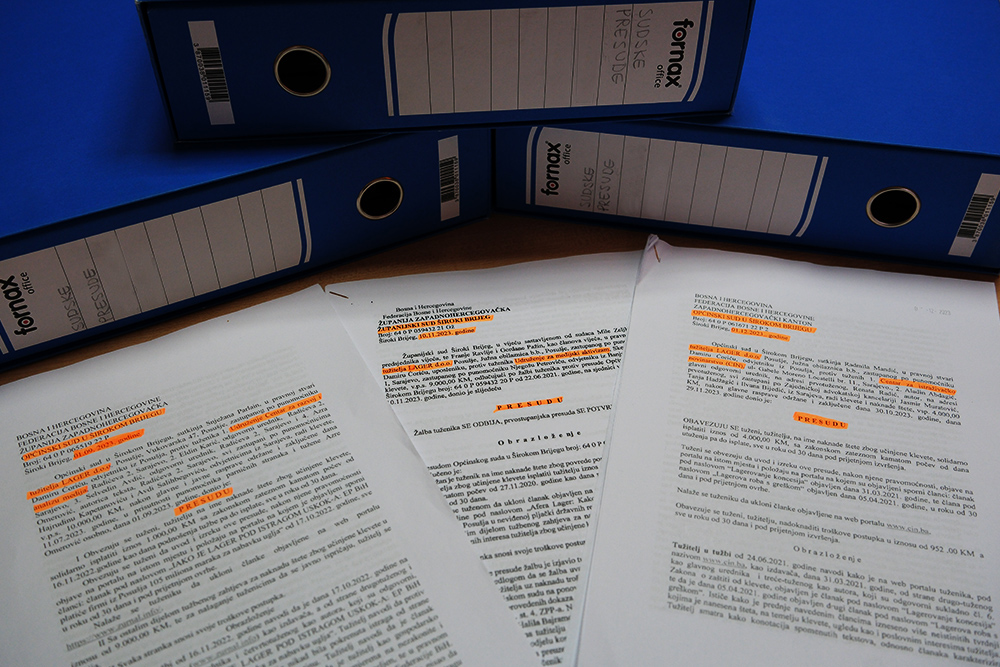 ŠIROKO BRIJEG – Optšinski sud u Širokom Brijegu je donio nepravosnažnu odluku prema kojoj Centar za istraživačko novinarstvo mora platiti firmi “Lager” štetu zbog klevete za navode iz “Žurnalovih” tekstova. Širokobriješki sudovi su u tri mjeseca donijeli tri presude protiv medija u korist firme iz Posušja.