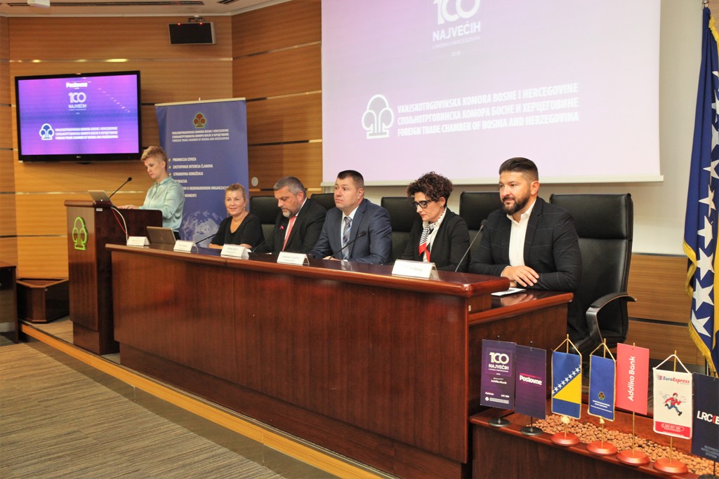 Projekat “100 najvećih u BiH” koji se ove godine prvi put održava pod pokroviteljstvom predsjedavajućeg Savjeta ministara BiH, Denisa Zvizdića, ima za cilj pokazati da u našoj zemlji ima veoma uspješnih kompanija koje su priznate na domaćem i svjetskom tržištu. Projekat godinama uz Spoljnotrgovinsku komoru BiH podržavaju i Savjet stranih investitora BiH, Privredna komora Federacije BiH i Privredna komora Republike Srpske. Rang-liste najvećih kompanija u BiH dostupne su u tradicionalnom specijalnom izdanju publikacije Poslovnih novina – “100 najvećih u BiH”, koja predstavlja godišnji pregled uspješnog poslovanja domaće privrede.
