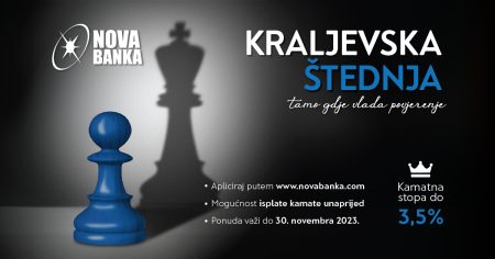 FINANSIJE „Kraljevska štednja“ u Novoj banci30. Augusta 2023. — 11:4612 minute čitanja Jedinstvena ponuda važiće do 30. novembra 2023. godine
