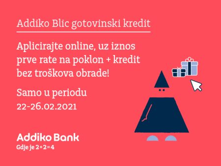 FINANSIJE Pogodnosti Addiko banke uz online apliciranje za gotovinski kredit25. Februara 2021. — 11:1802 minute čitanja U Addiko banci vrijeme je valuta koja najviše vrijedi, s toga naše ponude proizvoda i usluga kreiramo cijeneći vrijeme svojih klijenata