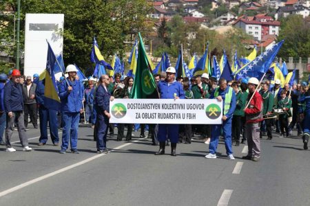 Oko 200 rudara iz osam rudnika u Federaciji BiH /FBiH/ je u protestnoj šetnji u Sarajevu tražilo da se ispoštuju njihova prava i da dobiju usaglašen kolektivni ugovor.