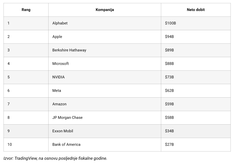 NJUJORK – Kompanija Alphabet zauzela je prvo mjesto sa neto dobiti od 100 milijardi dolara na listi deset najuspješniji američkih kompanija.