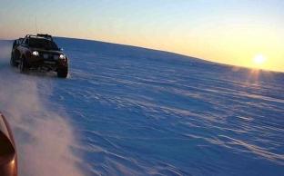 Već i mala šetnja oko logora je dovoljna da se vidi šta sve čeka učesnike ekspedicije. Sneg pod nogama je tvrd i škripi, a već nekoliko metara dalje u njega može da se propadne do struka. Svuda se vide duboke pukotine u ledu, a nove mogu da se otvore bilo gdje – i bilo kada. Čitavo zadovoljstvo košta 20.000 dolara. Iz logora se helikopterom leti na mjesto sa koga kreće karavan.