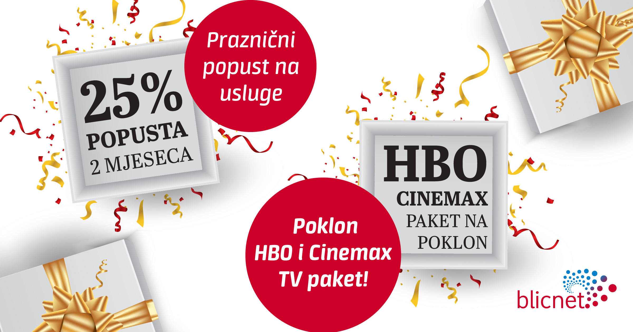 Dodatno, svojim korisnicima digitalne kablovske televizije, za ugodnije vrijeme provedeno u kući, Blicnet poklanja gledanje vrhunskog HBO i Cinemax TV paketa kanala bez dodatne naknade na određeni period.