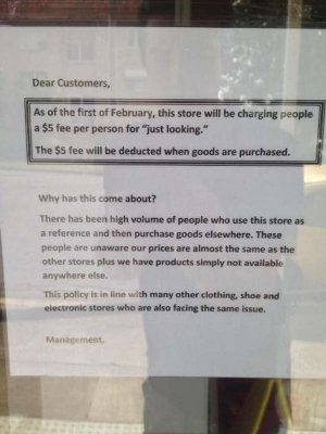 Posjetioci koji uđu u radnju i ne kupe ništa dužni su da plate četiri evra “troškove razgledanja”.