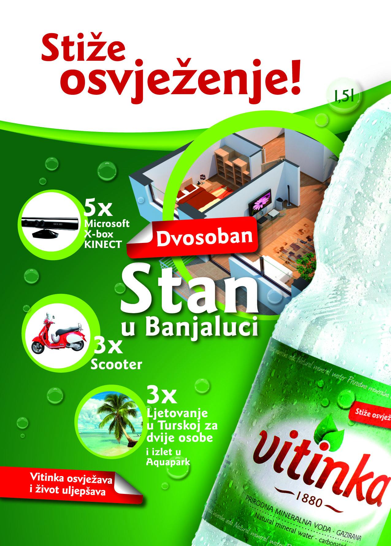 BANJALUKA, Kompanija Vitinka, koja proizvodi vodeće domaće brendove prirodne mineralne i izvorske vode, odlučila je ovog ljeta svojim vjernim potrošačima, ali i onima koji će to svakako postati, ponuditi pregršt osvježenja i to kroz veliku nagradnu igru „Vitinka osvježava i život uljepšava!“.