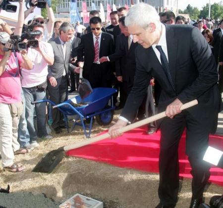 Sredinom jula 2010. kamen-temeljac na zemunskoj strani mosta, u blizini novosadskog puta gdje će prolaziti dio pristupnih saobraćjnica, položili su predsjednik Srbije Boris Tadić i predsjednik Stalnog komiteta Svekineskog narodnog kongresa Vu Banguo.